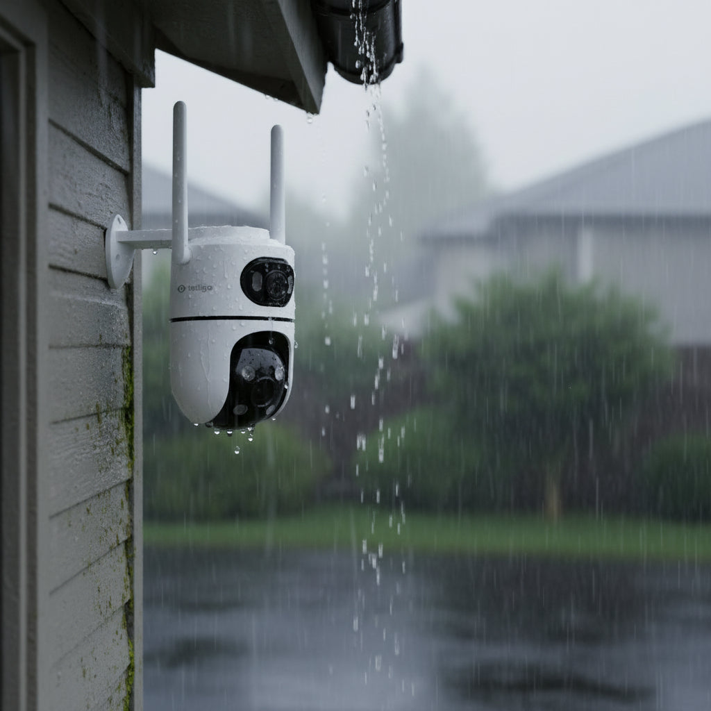 Set de 2 cámaras con doble lente, diseñada para uso exterior (IP66), con sensor de imagen CMOS, que garantiza un procesamiento óptimo de la imagen frente a cambios de luz y sombras. Cuenta con función de alerta de movimiento. Funciona conectada a una red WiFi y la podés ver en el celular, tablet o PC.