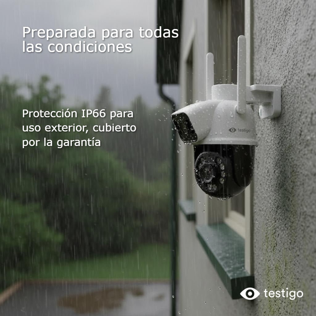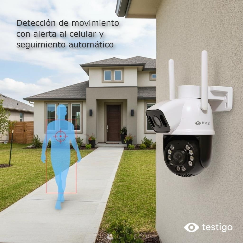 Cámara con doble lente, diseñada para uso exterior (IP66), con sensor de imagen CMOS, que garantiza un procesamiento óptimo de la imagen frente a cambios de luz y sombras. Cuenta con función de alerta de movimiento. Funciona conectada a una red WiFi y la podés ver en el celular, tablet o PC.