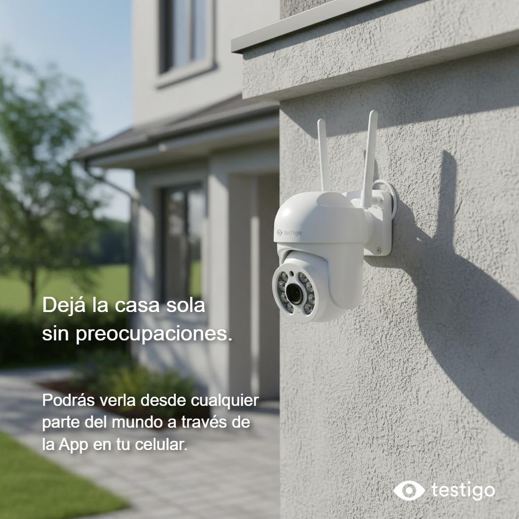 Diseñada para uso exterior (IP66), con sensor de imagen CMOS, que garantiza un procesamiento óptimo de la imagen frente a cambios de luz y sombras. Cuenta con función de alerta de movimiento. Funciona conectada a una red WiFi y la podés ver en el celular, tablet o PC.